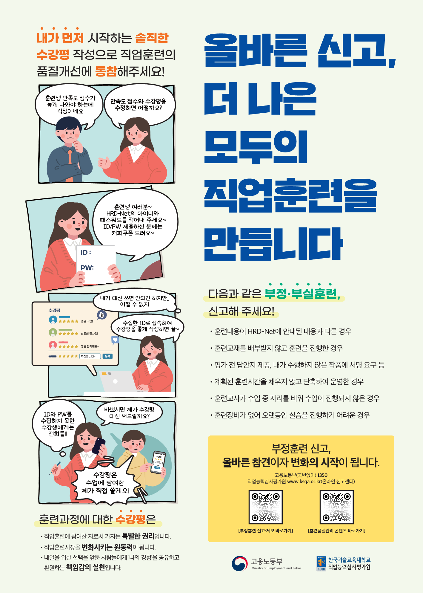 부정훈련예방 포스터: 올바른 신고, 더 나은 모두의 직업훈련을 만듭니다